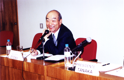 開会に先立ちまして田中会頭より、本日のゲストの方々の紹介も含めごあいさつ頂きたいと思います。よろしくお願いします。田中 本日は特別ゲストとして常連の赤阪総領事がOECD(OCDE=経済開発協力機構)事務局次長にご栄転、赴任前のご多忙中にも関わらずご出席いただいてお り、さらに日本からご来伯中の参議院議員、後藤博子先生にも超タイトなスケジュールをやりくりしてご出席いただきました。