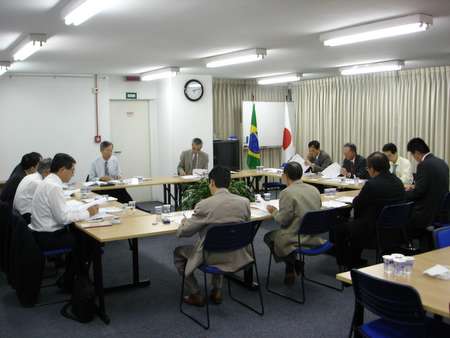 参加者は松田部会長 (パナソニック)、盤若副部会長(NEC)、篠原氏(パナソニック)、田中氏 (村田製作所)、三好氏(プリモテック21)、瀬古氏(プリモテック21)、御園氏(TDK), 伊豆山氏(CIS),土肥サンパウロ総領事館領事、平田藤義事務局長、オブザーバーとして大井氏、Watanabe氏(Taiyo Yuden)(順不 同)