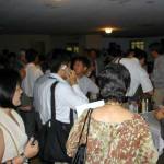 相互啓発委員会主催のカシャーサセミナーが8月16日午後4時から会場一杯の69人が参加して開催、試飲では3種類のカシャーサを飲み比べていた