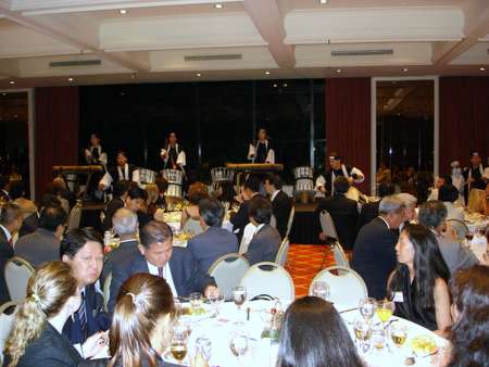 初めに田中信会頭が今年度の会議所活動の活性化を説明、続いて西林万寿夫総領事も開会の挨拶を行ない、東洋紡の二宮社長が帰国挨拶、河本新社長が着任挨拶を行なった後、工藤章名誉会頭が乾杯の音頭をとった。