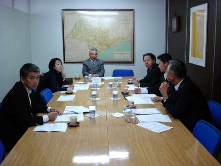 参加者は阿部勇部会長(戸田建設)、南アゴスチーニョ副部会長(デニブラ)、大滝守氏(ホス建設)、西村良二氏(YKK)、井上健治氏(ユマ家具)、金沢登紀子サンパウロ総領事館調査員