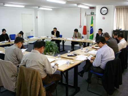 参加者は寺本部会長(JAL)、森田副部会長(SANKYU)、岐部副部会長(UBIK)、音田氏(K-Line)、広瀬氏(MOL)、和田氏 (Nippon Express)、田村氏(NTT)、丸山氏(NYK Line)、村田氏(SUZUYO)、大滝氏(ツニブラ)、金沢サンパウロ総領事 館調査員、平田事務局長
