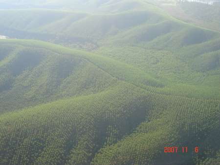 機窓から見るイパチンガ周辺のユーカリ植林地帯