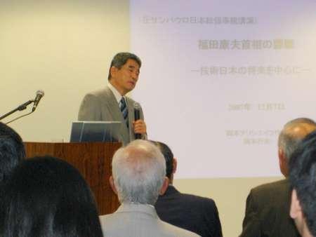 コンサルタント部会(渡邉裕司部会長)並びに異業種交流委員会(安部勇委員長)共催で、小泉内閣でイラク担当の首相補佐官を務めた国際問題専門家で政府関係機関や企業へのアドバイス、執筆や後援などに幅広く活動する岡本行夫氏の講演会「福田政権の課題、日本の技術の将来」と題して、12月3日午後4時からサンパウロ総領事館多目的ホールに100人以上が参加して開催された。