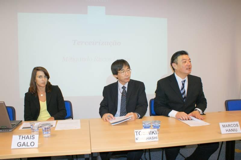 ピニェイロ・ネット弁護士事務所のタイス・ガロ弁護士が「派遣社員‐法律面でのリスク緩和」と題して、アウトソーシングのサービスコンセプト、民法や労働法面でのリスク、主にアウトソーシングされる警備、清掃、テレコンや臨時作業員、税制面での減税、外国人労働者のアウトソーシングの注意点などを説明、質疑応答では盛んに意見の交換が行なわれた。