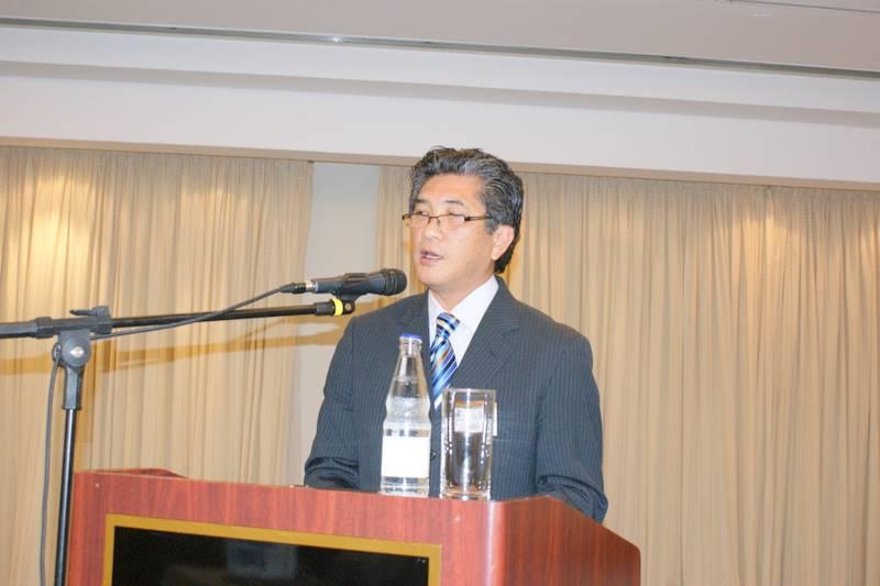 歓迎会で着任挨拶を行なう大部一秋総領事