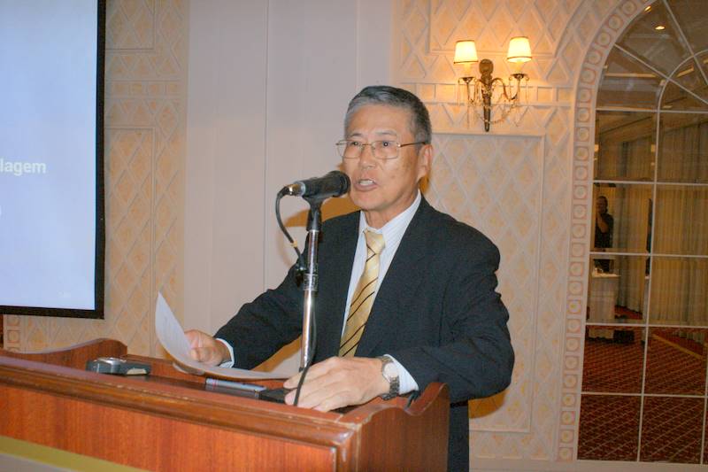 皆さんこんにちは。本日は当会議所のメインイベントであります業種別部会長シンポジウムに、ご多忙中にもかかわらず多数ご出席頂きして誠にありがとうご ざいます。特に今回は日本の経済産業省から通商政策局赤星康米州課長、本間英一室長、森川純係長、宮本敏央係長、室住由加係長および大熊靖夫特許庁国際課 課長補佐にご参加をいただいております。さらにサンパウロ総領事館からは大部総領事以下経済関係領事にもご参加いただいております。