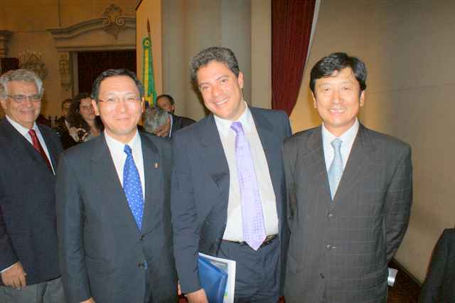 中国はヴァーレ社にとって最大の鉄鉱石の輸出先になり、また今後のアジアは世界経済の成長にとって重要な役割を果たし、世界の経済成長の66%は発展途上 国であり、特に中国は世界のコモデティ商品拡大を牽引、経済成長率の高いアジアの2007年末の外貨準備高は4兆2,400億ドルで世界全体の52%を占 め、そのうち中国は1兆9,000億ドルを擁して、とてつもないポテンシャルがあり、アジアの経済成長に欠かせない天然資源の豊富な南米とは相互補完関係 にあると強調して講演を終えて、サンパウロ大学のジョアン・グランジーノ・ローダス理事から記念プレートが贈呈された。