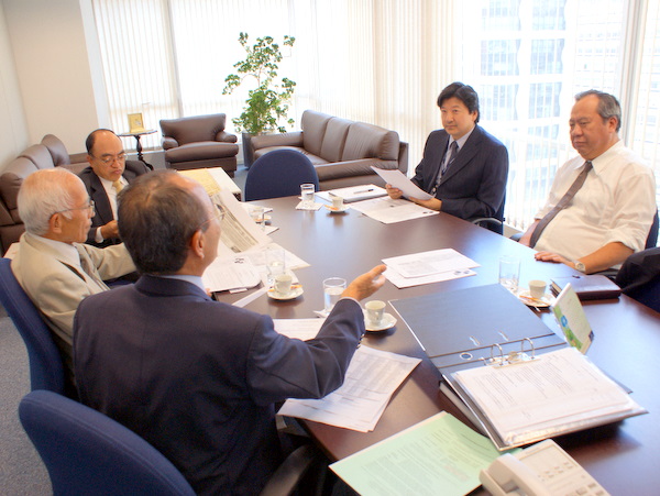 参加者は新谷道治委員長(味の素) 、米倉立二郎財務委員長(南米安田保険)、山田唯資監事会議長(個人会員)、佐々木リカルド弁護士(味の素)、平田藤義事務局長