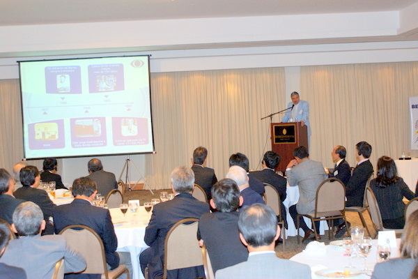 バンデイランテス・コムニケーショングループのジョアン・カルロス・サアジ社長が「ブラジルの大規模メディアから見た日伯関係」と題して講演した