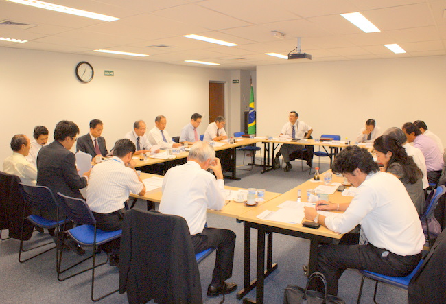 参加者は西岡部会長(日立)、林副部会長(メタルワン)、大井副部会長(前川製作所)、原口氏(CBC重工)、渋谷氏(川崎重工)、浅井氏(コマツ)、右成氏(京セラ)、田中氏(京セラ)、駒形氏(MCC)、宮崎氏(ブラジルMMC),原田氏(ミツトヨ)、杉山氏(新日鐵)、村田氏(NSK),北原氏(ヤンマー)、渕上氏(ユシロ)、岸氏(ユシロ)、加藤領事(サンパウロ総領事館)、黒木調査員(サンパウロ総領事館)、平田事務局長