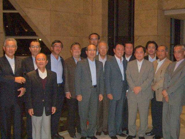 麻生太郎前総理大臣と記念撮影する参加者