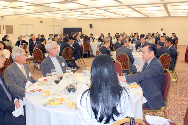 ジョージ・ヤナイ 連邦上院議員の講演に先立って島内大使はヤナイ上院議員の就任式で、地元のマット・グロッソ州やブラジルや日本のために努力されておられることが印象に残っていると述べ、続いて松田副会頭が歓迎の辞を述べ、講演終了後にワルテル飯星下院議員はヤナイ上院議員と協力して両国のために努力していくと述べた。