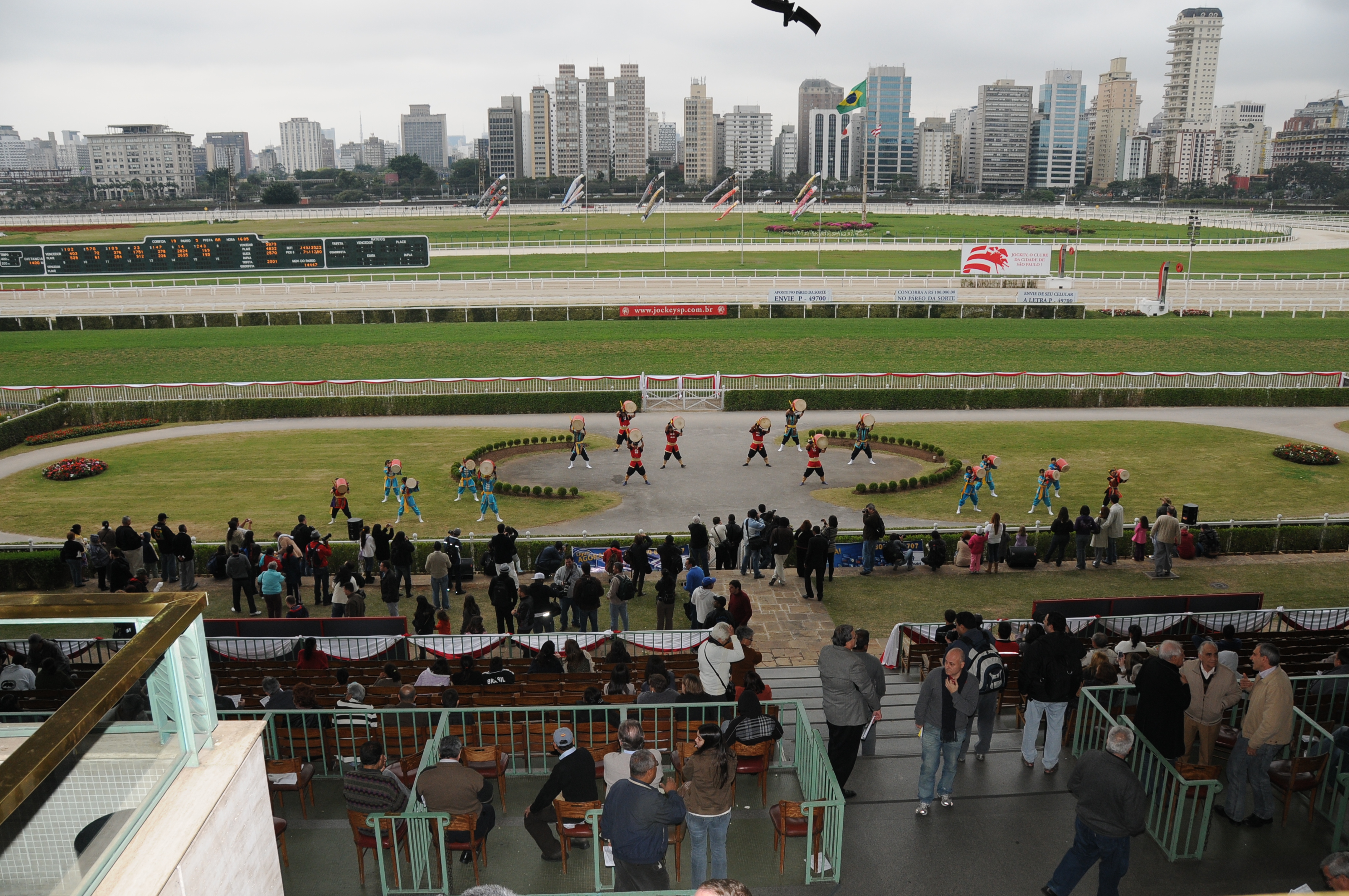 ブラジルの日系コロニアに敬意を表して、サンパウロ・ジョッキークラブ内で日本文化を紹介するあざやかなイベントでレキオス芸能同好会による「沖縄太鼓」、鳥取県人会による「傘踊り」、阿波踊りレプレーザによる阿波踊りも披露された。