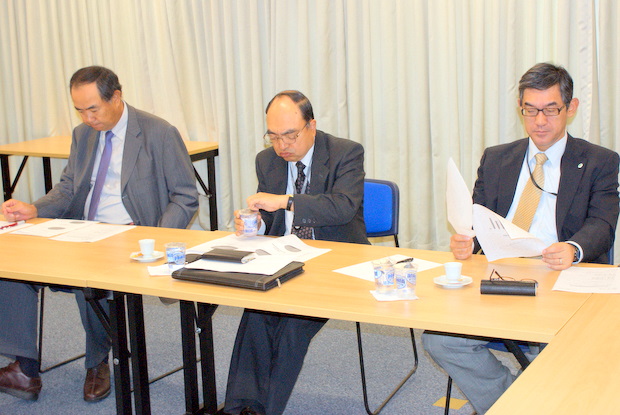 左から2011/2012年度監事選挙管理委員会の林恒清委員/米倉立二郎委員長/西岡勝樹委員