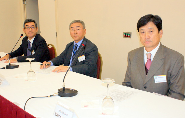 左から西岡勝樹 監事選挙管理委員/中村敏幸 理事選挙管理委員長/中山立夫会頭