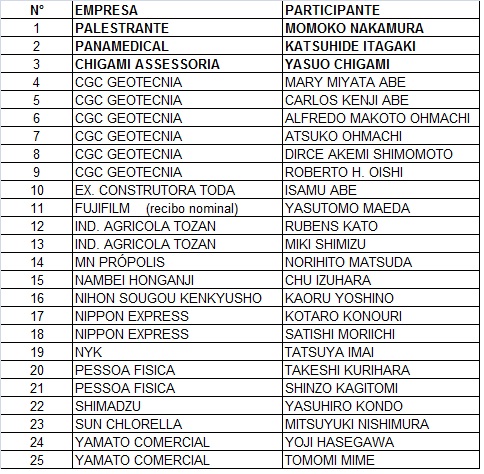同講師は杜氏の腕が味を大きく左右するのは日本酒だけであり、大量生産の機械化は非常にむずかしい、また肉料理には純米酒がよく合うが、カルパッチョなどの生肉は日本酒にはあまり合わない、究極の日本酒は雫酒、日本酒購入後はなるべく1か月以内に消費することをすすめますと説明、最後に中村講師は「大好きなブラジル人に大好きな日本酒をすすめたい」と結んで講演を終えて大きな拍手が送られた。