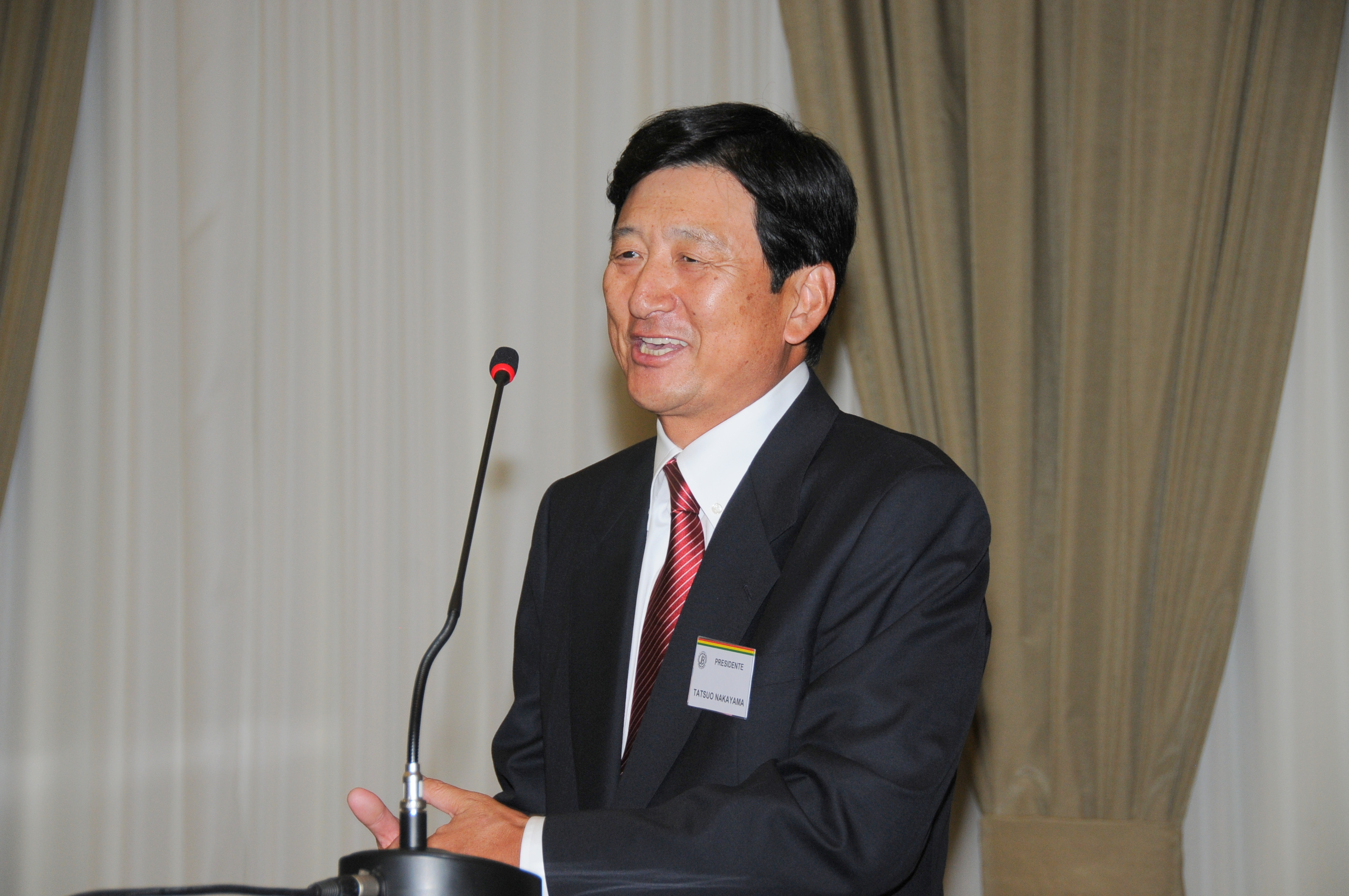 初めに中山立夫会頭がブラジルは過去数年に亘り目覚しい経済成長を遂げ、世界各国からの企業進出が相次いおり、ルーラ政権後の与党PTのジルマ・ロウセフ大統領率いる新政権も引き続き力ずよい成長が期待されており、ブラジル進出を検討している日本企業も数多くあるが、決断の速い韓国企業のブラジル進出に危機感を表明しながらも、中山会頭は「われわれ日系企業にもまだまだ充分できる」と日系企業のさらなる奮起を促し、今年の商工会議所の更なる発展のために副会頭、専任理事と力を合わせて邁進したいと力強く抱負を述べた。