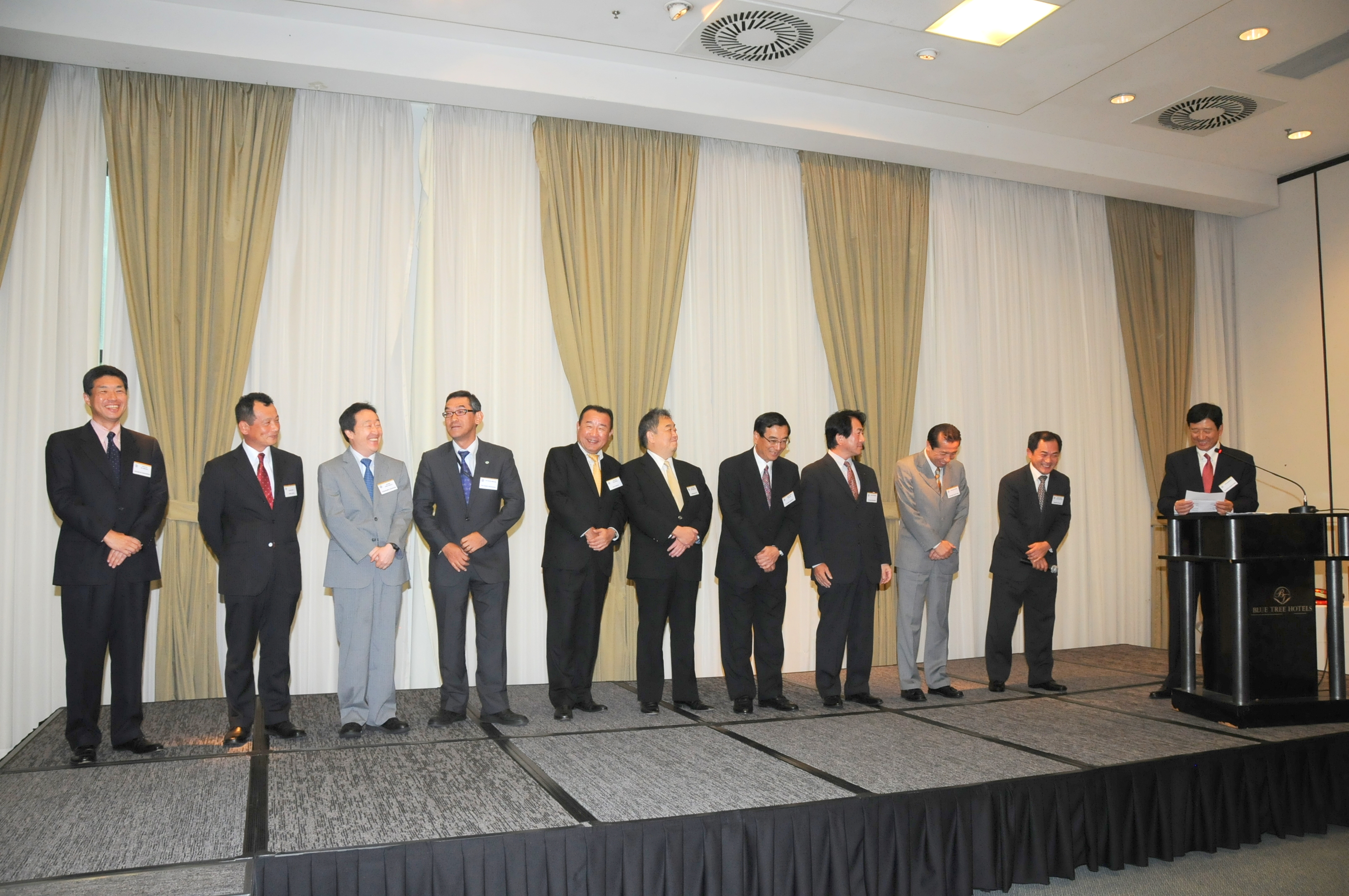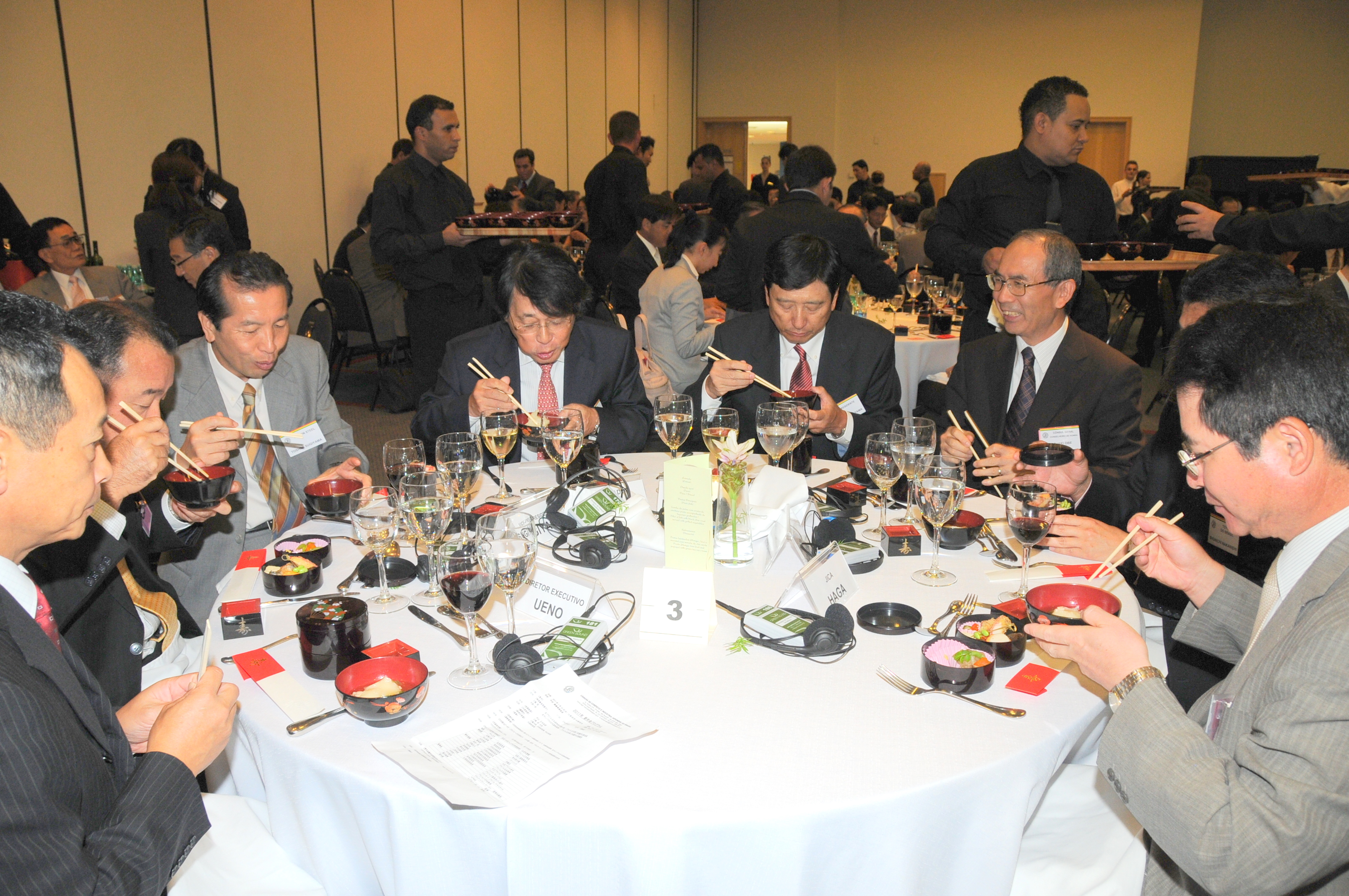 連絡事項ではサンパウロ総領事館の加藤秀雄領事が「日伯社会保障協定に関するアンケート調査」で協力を以来、3分間スピーチではデロイト・トーマツ社の小川陽一郎開発国際本部長がブラジルへの投資拡大についてスピーチ、代表者交代ではトヨタの長谷部省三社長が5年前にブラジルに赴任したが、光陰矢のごとしの通り、あっという間に過ぎ去ったと語り、今回のヘアーカットによるイメージチェンジではよく仏門に入るのかと聞かれると困惑しているエピソードを披露してウイットに富んだ話術で笑いを誘い、後任の中西俊一社長はブラジル駐在は初めてであり、ブラジルをよく知りたいと意欲を示していた。