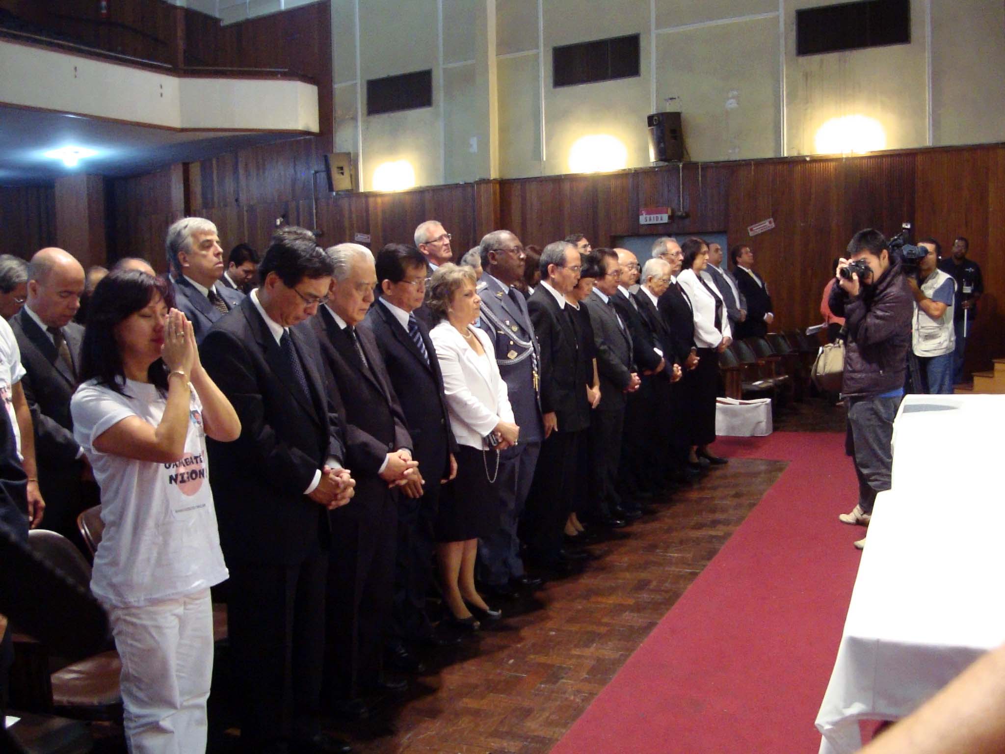 参加者全員で黙祷(写真提供 ブラジル日本文化福祉協会)