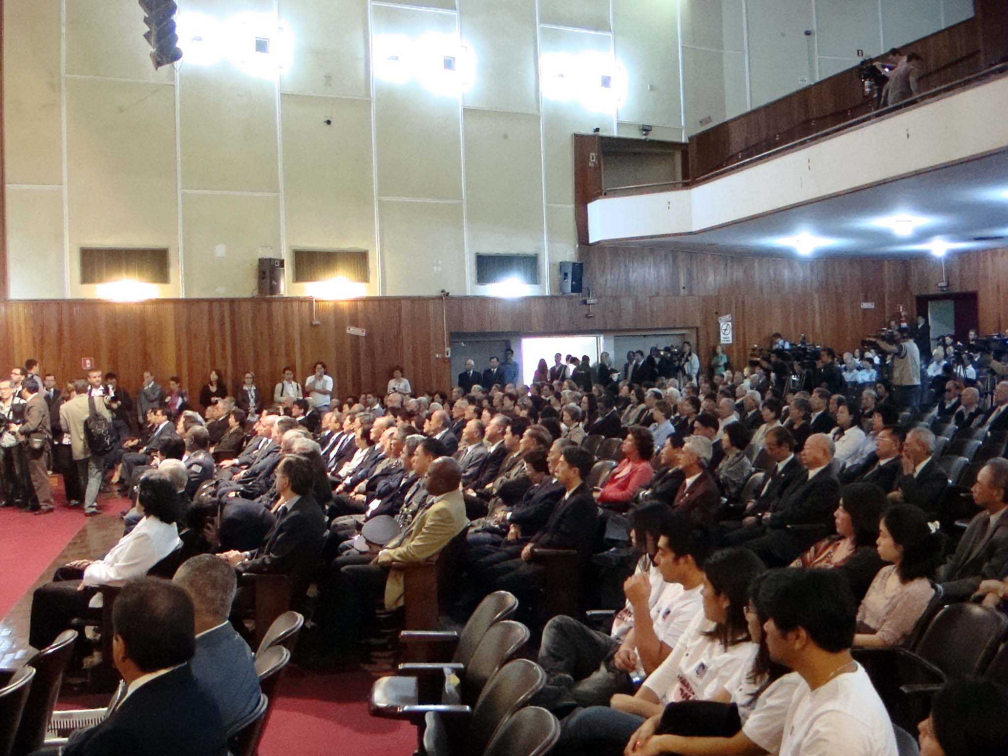 日系5団体共催の東北関東大震災合同慰霊セレモニーが2011年3月17日午前10時から文協大講堂で開催、大部一秋総領事御夫妻、アルダ・マルコ・アントニオ副聖市長、太田イオランダ連邦下院議員や日系5団体代表など600人が参加して厳かに執り行われ、ブラジル日本商工会議所からは前田一郎日系社会委員長、平田藤義事務局長が参加した。