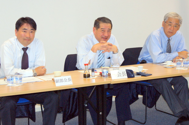 左から大井副部会長(ブラジル前川)/西岡部会長(三菱重工)/岡村副部会長(メタルワン)(fotos Rubens Ito/CCIBJ)