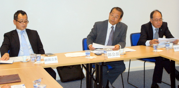 左から上野秀雄副部会長/岡田幸平部会長/金屋悦二副部会長(fotos Rubens Ito/CCIBJ)