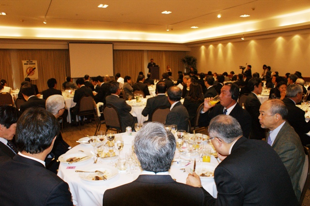 9月の懇親昼食会は2011年9月16日正午から午後2時までインターコンチネンタル・ホテルに110人が参加して開催、司会は平田藤義事務局長が務め、初めに特別ゲストの三菱東京UFJ銀行ロンドン支店欧州市場部の武田紀久子シニアカレンシーエコノミスト、マット・グロッソ州のフランシスコ・ダルトロ副知事並びにブラジル日本商工会議所名誉顧問の大部一秋総領事が紹介された。