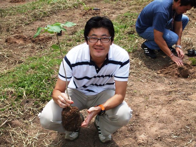 同社の取り組みについて聞いた後、同社所有の農場内にて参加者自ら苗木15本を植林(環境負荷を考え、今年はパオブラジル、イッペー等、多種多様な苗木を植林した)、見学会は盛況の中で終了を迎えた。