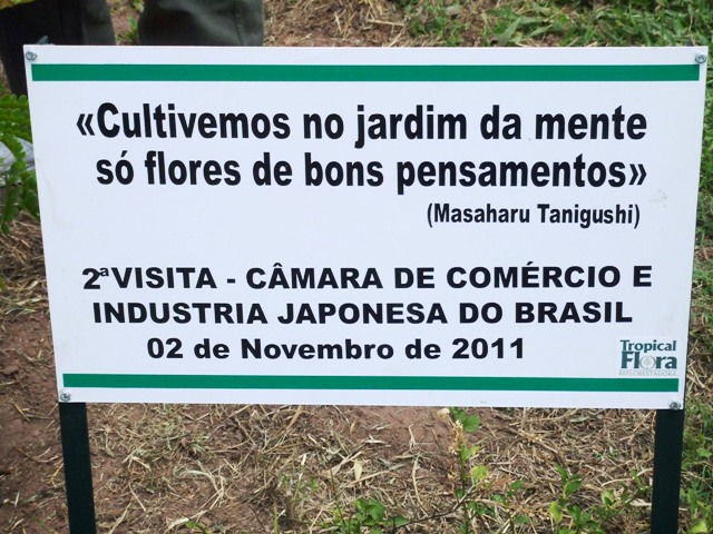 昨年に続いて2回目のサンパウロ州ガルサ市バウルにあるトロピカル・フローラ社農園での植樹記念プレート