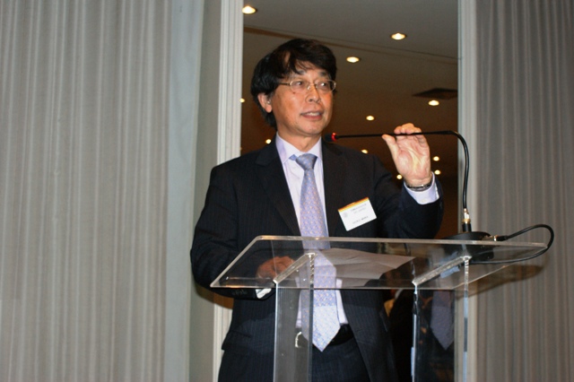 近藤正樹会頭は初めに挨拶で、記録を更新する参加者に対してお礼を述べ、昨年はアラブの春、東日本大震災、タイの洪水、ヨーロッパの債務危機など心が重くなる想定外ではなく起こりえる多くのことが連続して発生、震災復興はまだまだであるが、日本には互譲精神があるので必ず復興すると強調した。