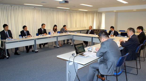 参加者は伊藤部会長(ブラジル住友商事)、紀井氏(ジェトロサンパウロセンター)、長谷川氏(伯国三菱商事会社)、大杉氏(ブラジル三井物産)、鈴木氏(豊田通商)、田村氏(ブラジル住友商事)、三瓶氏(テルモ)、佐々木副領事(サンパウロ総領事館)、平田事務局長