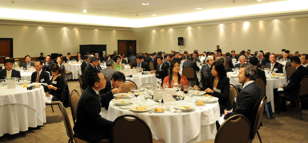 4月の懇親昼食会は、2012年4月13日正午から2時までインターコンチネンタルホテルに105人が参加して開催、司会は平田藤義事務局長が務めた。