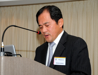 イヴァン・ハマーリョABECE会長の講演を前に近藤正樹会頭が歓迎の辞を述べ、