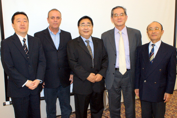 左からコンサルタント部会の澤田吉啓部会長/デロイト・トゥーシュ・トーマツ社のフェルナンド・マットス氏/講師のデロイト・トゥーシュ・トーマツの都築慎一ディレクター/電気電子部会の篠原一宇部会長/平田藤義事務局長