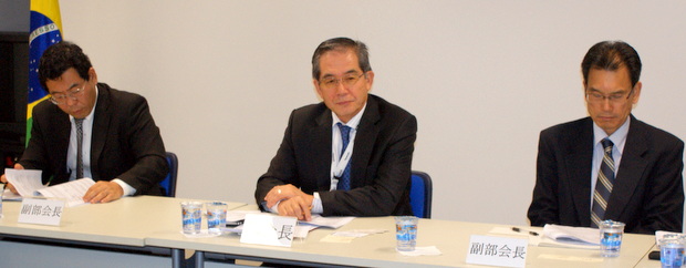 左から小山副部会長(NEC Latin America)/篠原部会長(パナソニック)/綿貫副部会長(ムラタ・ワールド)(Foto: Rubens Ito / CCIJB)