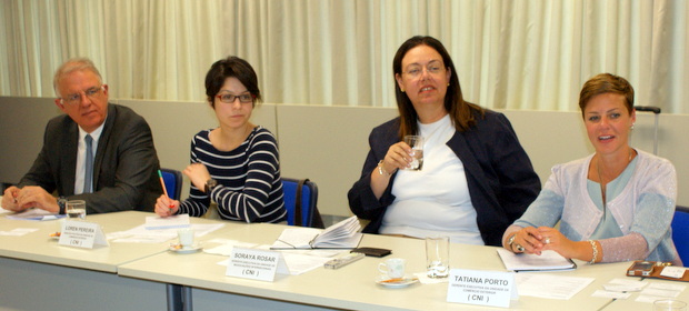 左からCNIのジョゼ・アウグスト・コエーリョ政策・戦略部長/ローレン・ペレイラ貿易部政治アナリスト/ソライア・ロザール国際交渉部エグゼクティヴマネジャー/タチアナ・ポルト貿易部エグゼクティヴマネジャー(Fotos: Rubens Ito / CCIJB)