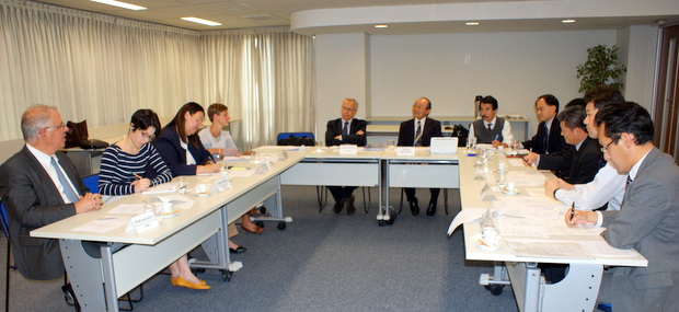 正面左から統合開発研究センター(CINDES)のペドロ・ダ・モッタ・ヴェイガ氏/平田事務局長
