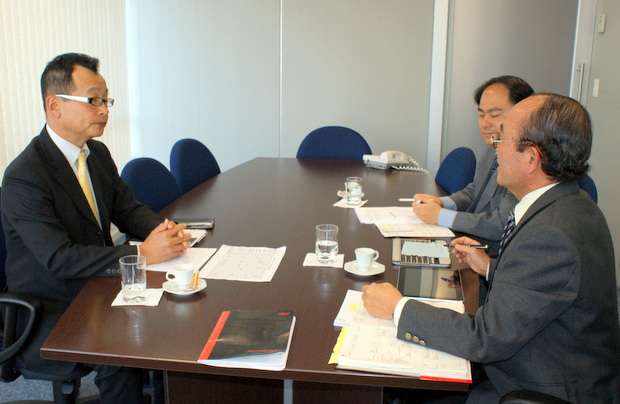 企業経営委員会の上野秀雄委員長が2012年9月3日に商工会議所を訪問、9月26日に予定されている日本語によるブラジル労働法セミナーの開催について、平田藤義事務局長、日下野成次総務担当、ルーベンス・イトウ編集担当と意見交換を行った。