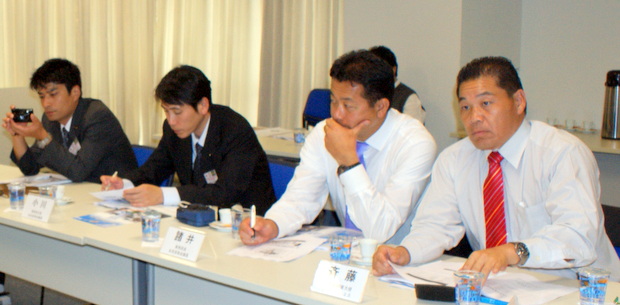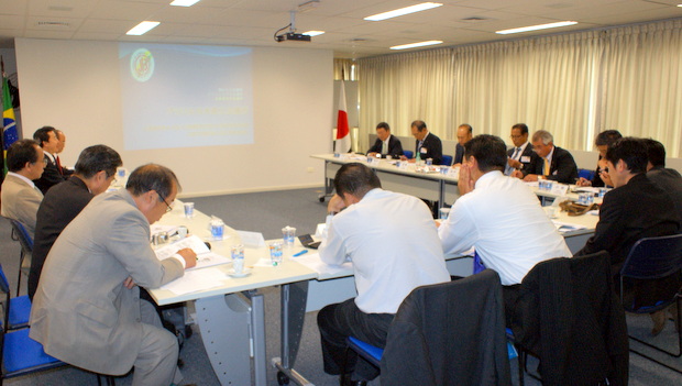 初めに平田藤義事務局長が歓迎挨拶、続いて竹並万吉団長が挨拶を行った後、参加者が自己紹介を行い、平田藤義事務局長がブラジル日本会議所 の沿革、会員の推移、会議所の役割、組織図、会議所の委員会並びに部会の活動や役割、公益団体としての使命と政府への提言、事務局の役割として電話やE メールに対する問合せに対する処理、増加の一途をたどる表敬訪問の対応、業種別の会議所訪問、ホームページの充実、非常に多い日本からのホームページのアクセス数などについて説明した。