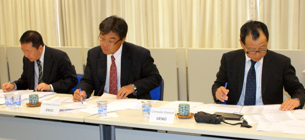 左から理事選挙管理委員会の藤井敏晴委員/中村敏幸委員長(Fotos: Rubens Ito / CCIJB)