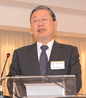 最後に当所会議所の元名誉会頭の島内憲前在ブラジル日本国特命全権大使は、2006年から2010年9月までブラジリアで勤務、数十回足を運んだサンパウロにはノスタルジアを感じており、また2年8か月ぶりのブラジルは本当に居心地の良い国であり、ブラジルはよくないという話になっているが、それは間違っていると自信を持って言えると強調、官民力を合わせればブラジルは非常に良くなり、また日伯ほど両国の関係が良い国はなく、日本はブラジルとパートナーシップを組んでアジアの成長力を取り組む必要があるが、ブラジルのポテンシャルが理解されていないので、ブラジルの良さを積極的に伝えていくと述べ、平田事務局長は島内大使は歴代の大使の中でも会議所に活力を与えてくれ、官民一緒になってやろうとメッセージをくれたことに感謝していると述べた。