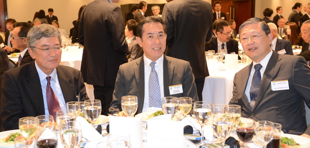 左から藤井晋介会頭/福嶌 教輝 在サンパウロ日本国総領事/ブラジル日本商工会議所名誉顧問/島内憲前在ブラジル日本国特命全権大使