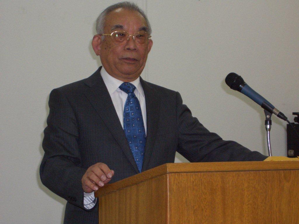 講演中の真宗大谷派(東本願寺)南米開教区開教監督の菊池顕正氏