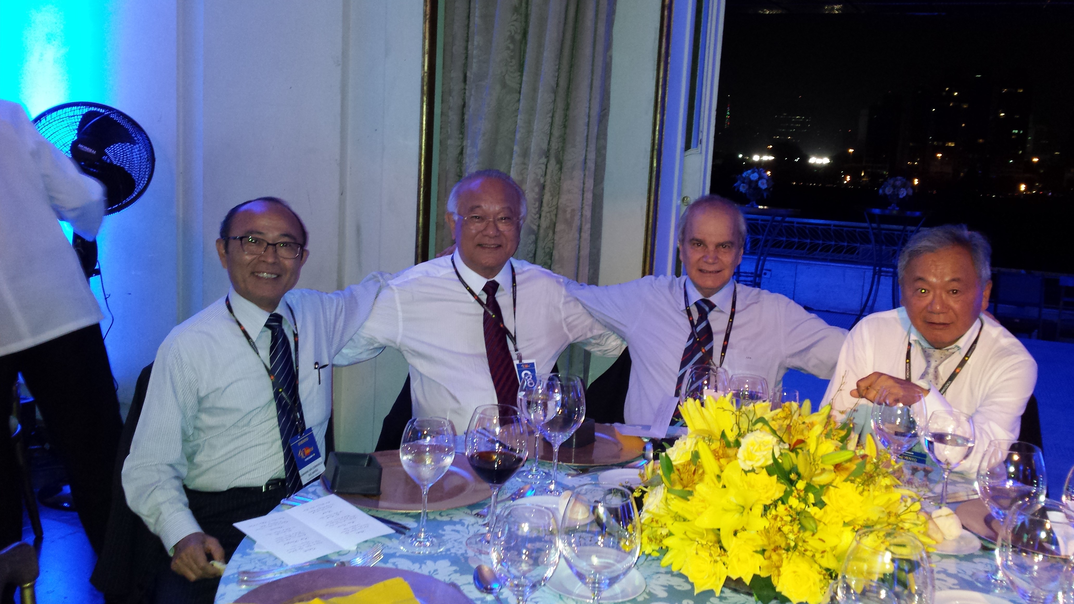 左から平田事務局長、伊藤 元社長、元ブラジル横河役員のCarlos Fernandes Braz氏とジョージ・モリ氏