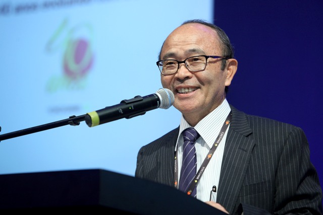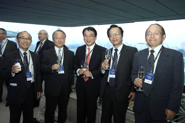 福嶌総領事、海堀会長、吉田社長、平田事務局長が鏡開きを行った。最後の閉会挨拶は吉田社長が参加者へ丁寧にお礼、またブラジルYokogawa 設立当時の伊藤武 元社長も「40年前に自分の妻を含めた6人体制でスタートした。チリ、アルゼンチン、ペルー、コロンビアにも業容を拡大、今現在70倍の陣容、420人に成長し非常に満足している。」と、熱い思いを込め3度繰り返した「有難う」の言葉が会場を沸かした。