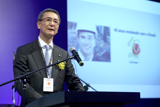 最初、同社の設立40年の歴史をビデオで紹介後に海堀会長が挨拶、続いて福嶌総領事、平田藤義事務局長、主要顧客のブラスケンやヴァーレの役員等がブラジルにおける工業振興および一般社会に多大な貢献を果たした事に対し敬意を表し今後の益々の躍進・発展を祈り祝辞を述べた。