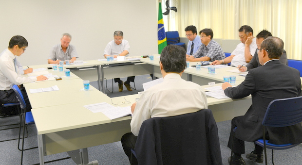 参加者は三上部会長(戸田建設)、南副部会長(デニブラ)、小橋川氏(ホス建設)、藤井氏(CGC )、森口氏(STARTS IMOBILIARIA)、紫牟田氏(Nicom)、稲井氏(Nagawa do Brasil)、遠藤副領事(サンパウロ総領事館)、 平田藤義事務局長、大角編集長
