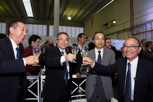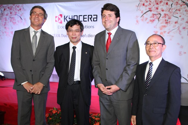 本社(京セラドキュメントソリューションズ)より、九鬼 隆 取締役常務執行役員(営業本部長)、同社米州社長のNorihiko Ina(伊奈)氏等が駆けつけ、又全伯の販売代理店の店主の他、同グループの成塚久徳社長(KYOCERA do Brasil Componentes Industriais Ltda.) も出席、来賓として在サンパウロ総領事館の佐野浩明首席領事、坪井俊宣経済担当領事、板垣勝秀氏(前盛和塾のブラジル支部代表世話人、現在日本語普及セン ター理事長)等に加えSANTANA DE PARANAÍBAの市長、経済開発・雇用局長、市関係者等が参加した。九鬼氏、佐野氏、伊奈氏、豊福諸氏等のほか同市市長が挨拶を行った。