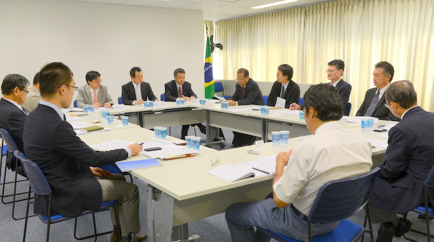 参加者は、上野部会長(クラシキ)、横山副部会長(オーミ繊維工業)、小金沢副部会長(日清紡)、柴垣氏(サンヨーテックス)、岡田氏(ユニチカ)、山本氏(東洋紡)、平岡氏(ダイワボウ)、橋本氏(YKK)、安井氏(東レ)、枝川氏(OJI PAPEIS)、藤田氏(OJI PAPEIS)、平田事務局長、大角編集長